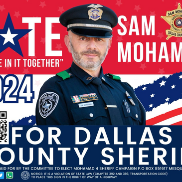 Discover the essence of leadership with Sam Mohamad, the ideal choice for Dallas Sheriff. Boasting an impressive 23-year career in law enforcement, Sam is dedicated to building bridges and fostering inclusivity. His rich multicultural background uniquely equips him to serve and understand every community in Dallas. From community policing to combating human trafficking, Sam's extensive expertise stands out. Rally behind a leader committed to diversity, safety, and unity. Vote for Sam Mohamad – the Sheriff who genuinely represents and safeguards our diverse city!